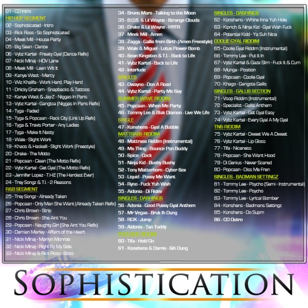 Another day, another mixtape for the streets. DJ Scribz is aiming to take over the summer with his Sophistication mixtape. This 86 track tape features a mix of Hip Hop, Dancehall and R&B songs from artistes such as Rick Ross, Chris Brown, Drake, Tommy Lee, Konshens, and many others. If this tape does not have you moving, you’re doing it wrong. Check out the links below and enjoy!